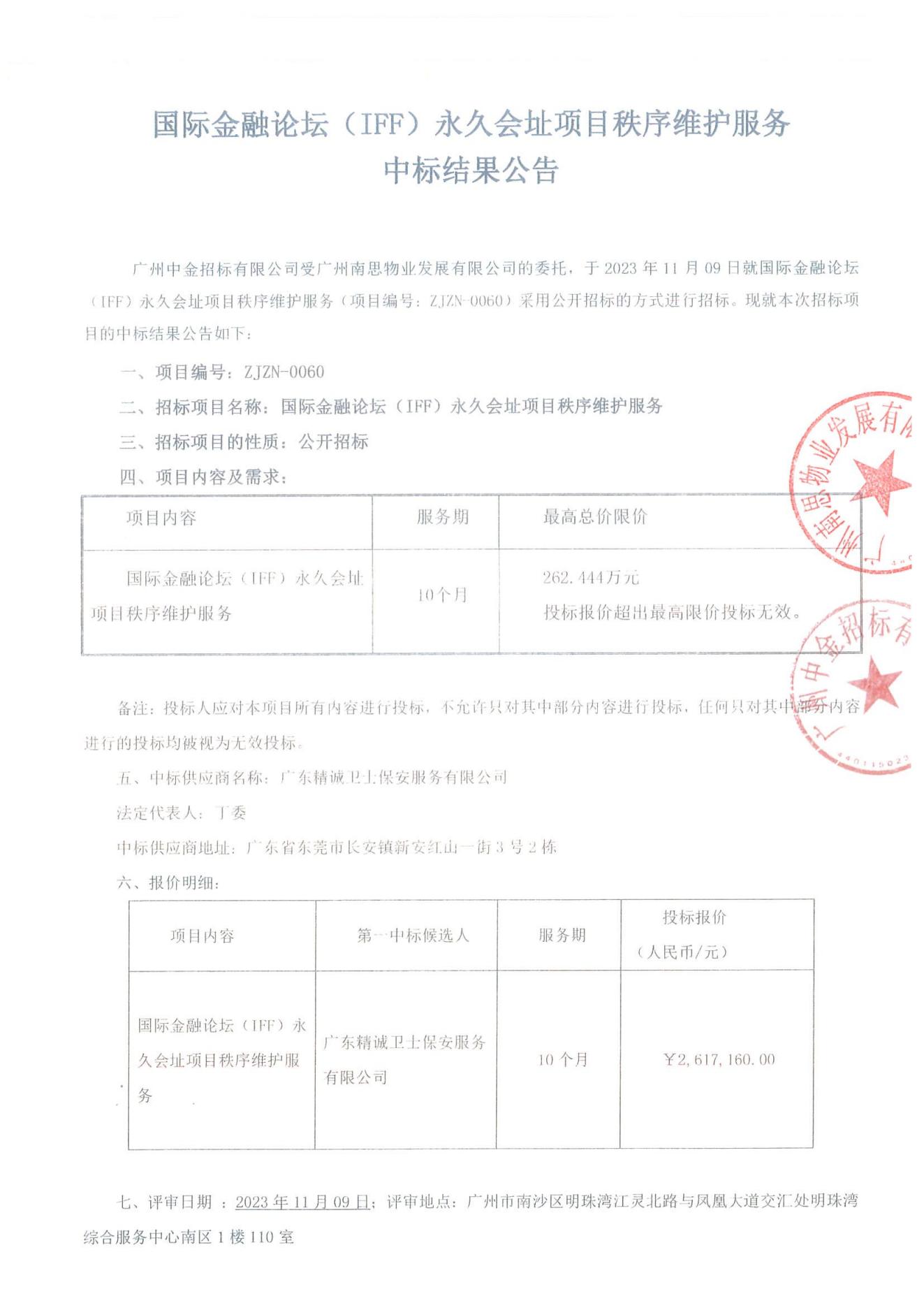 国际金融论坛(IFF)永久会址项目秩序维护服务中标结果公示