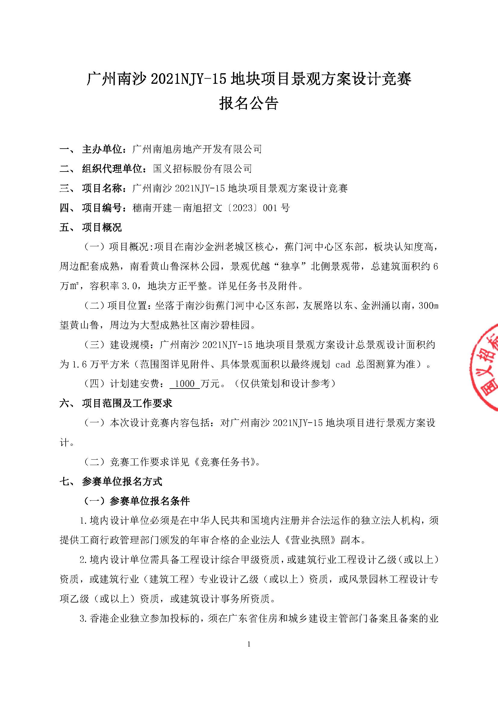 广州南沙2021NJY-15地块项目景观方案设计竞赛报名公告
