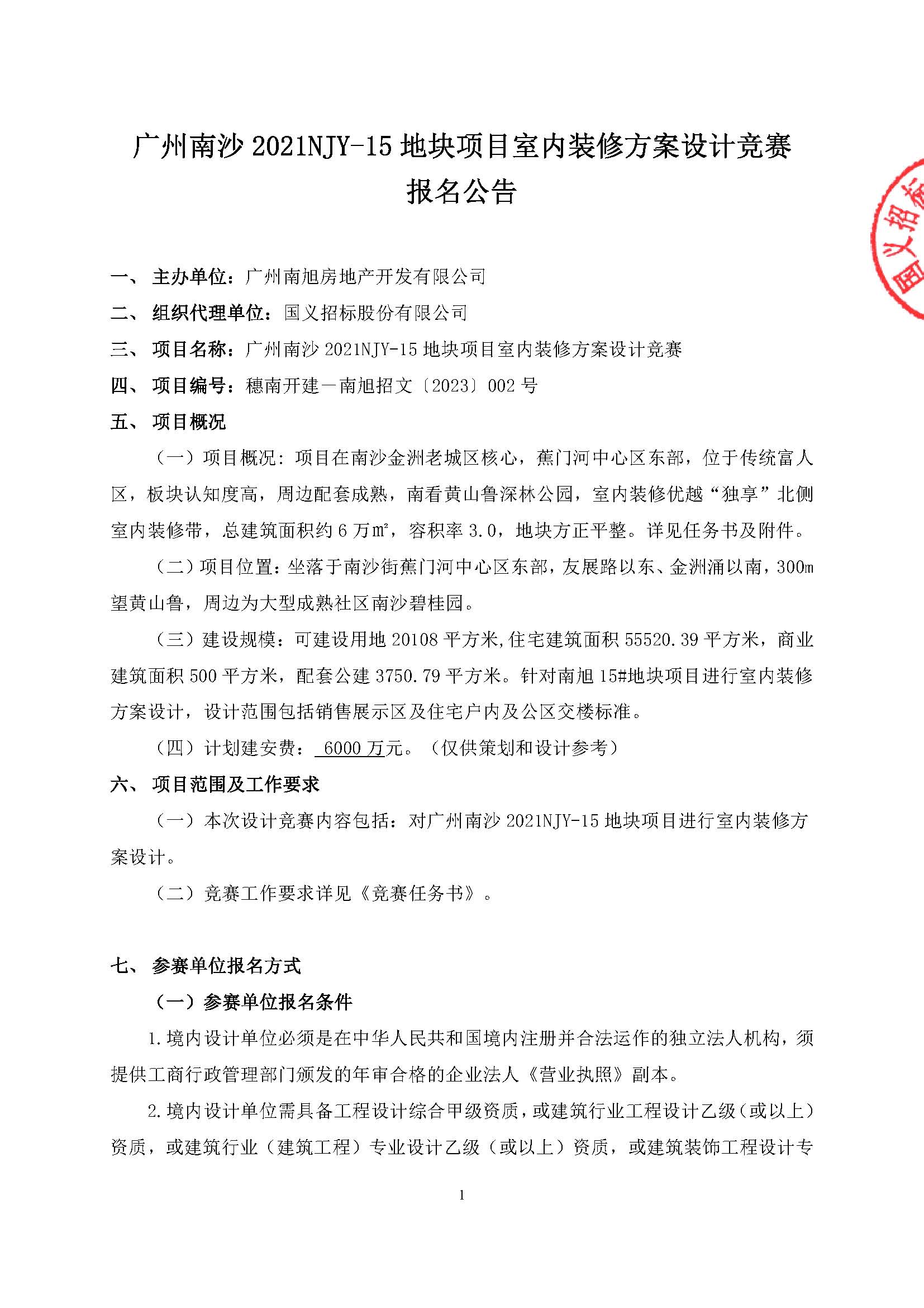广州南沙2021NJY-15地块项目室内装修方案设计竞赛报名公告