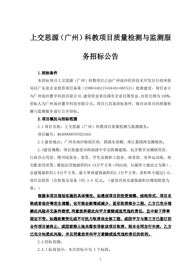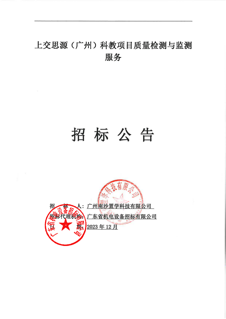 上交思源(广州)科教项目质量检测与监测服务招标公告