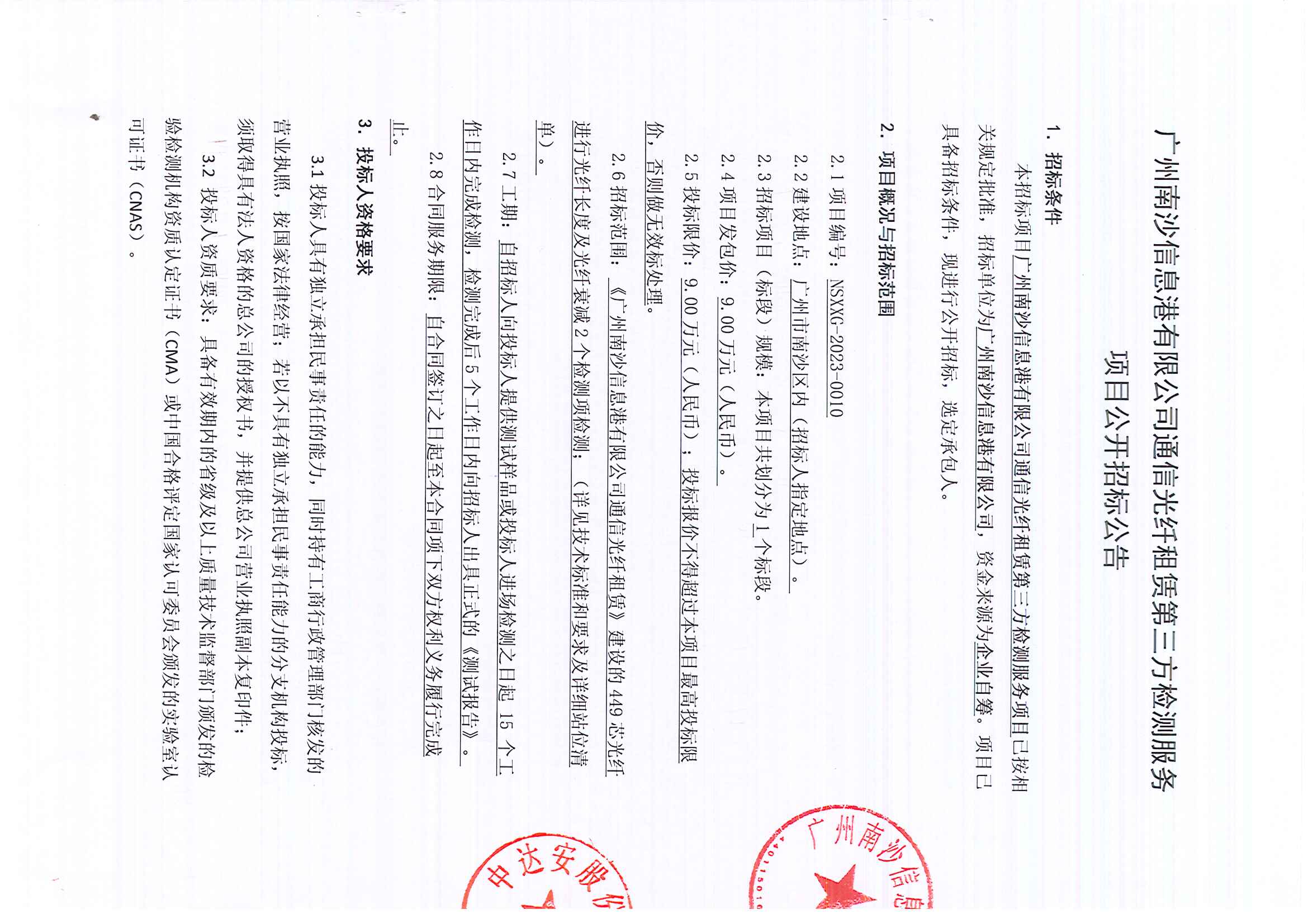 广州南沙信息港有限公司通信光纤租赁第三方检测服务项目
