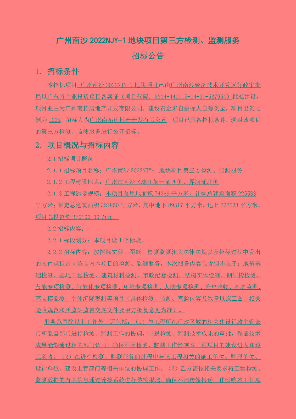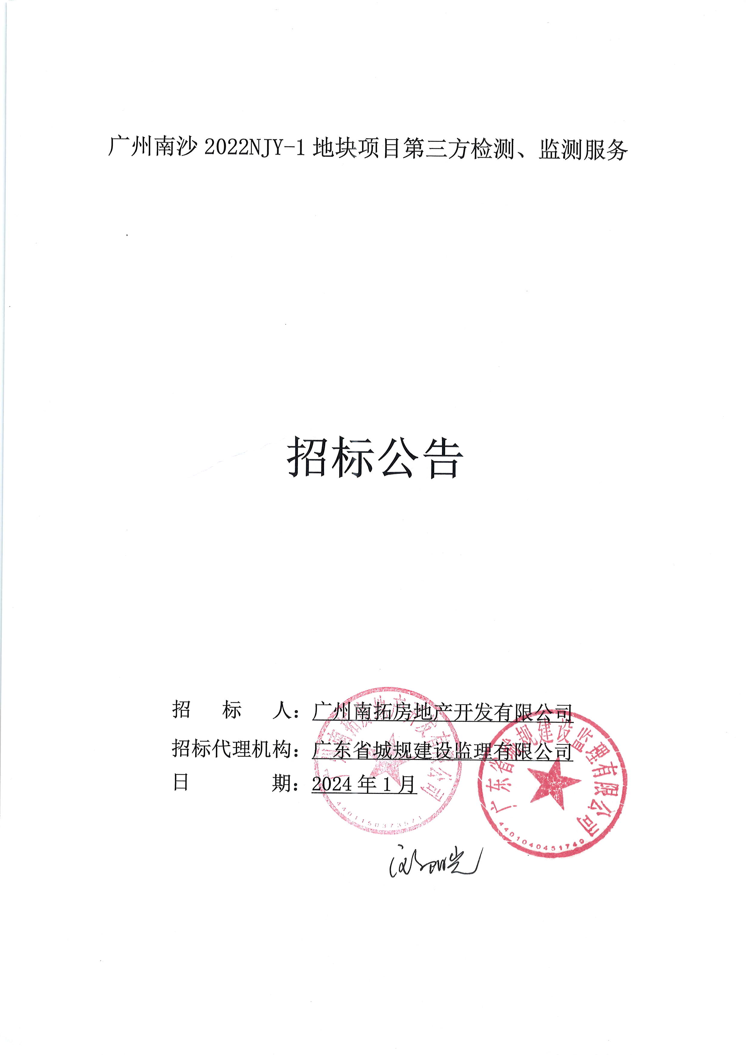 广州南沙2022NJY-1地块项目第三方检测、监测服务招标公告