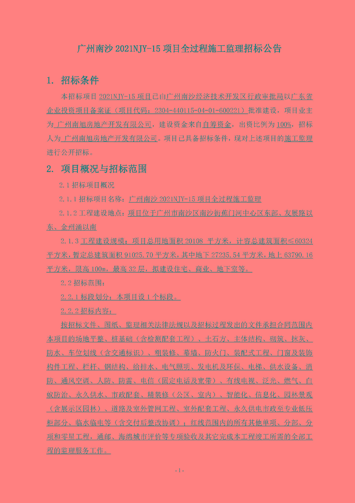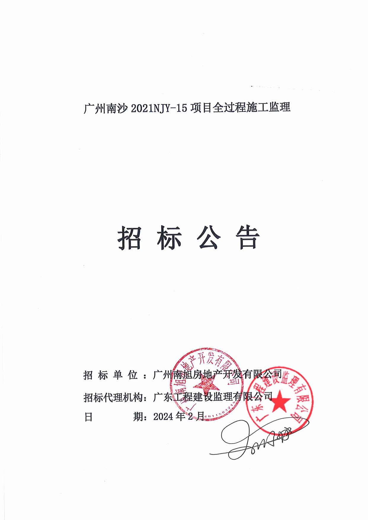 广州南沙2021NJY-15项目全过程施工监理招标公告