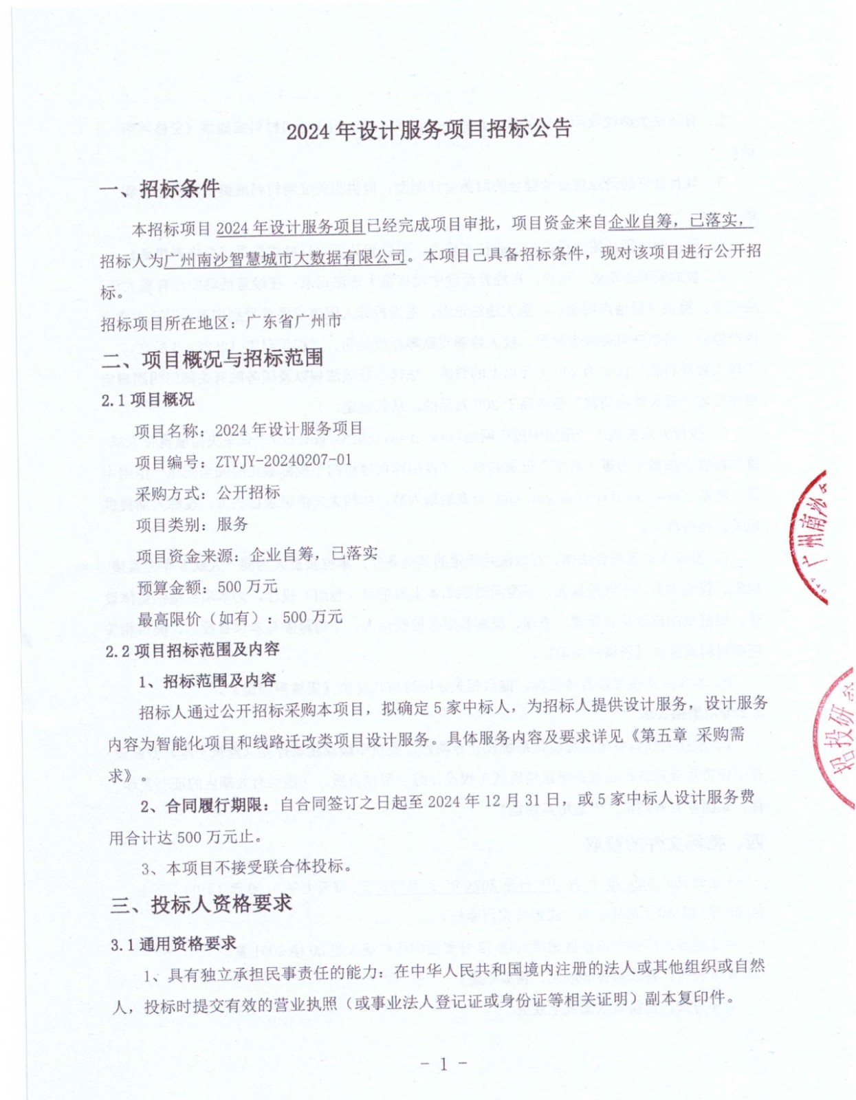 2024年设计服务项目招标公告