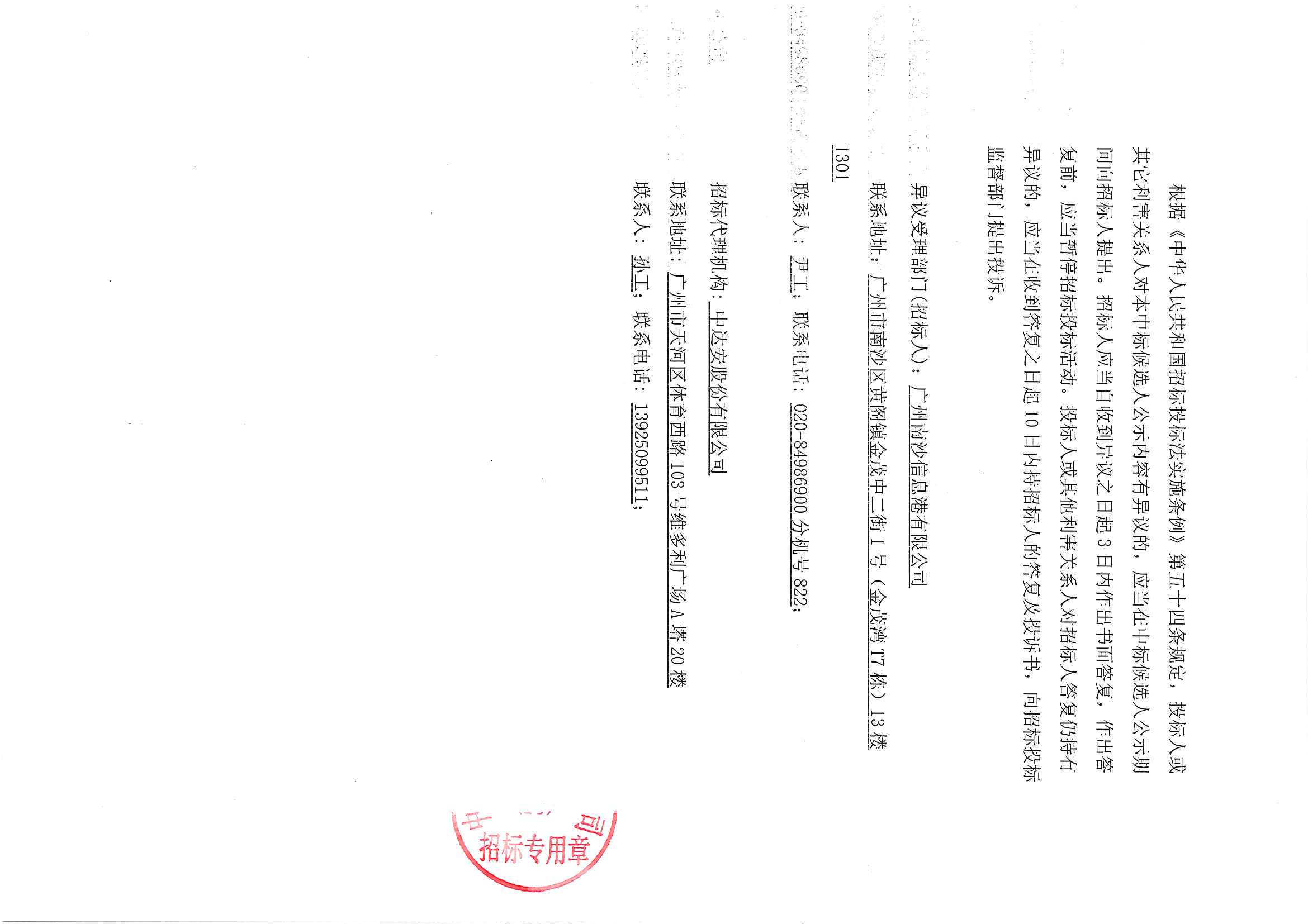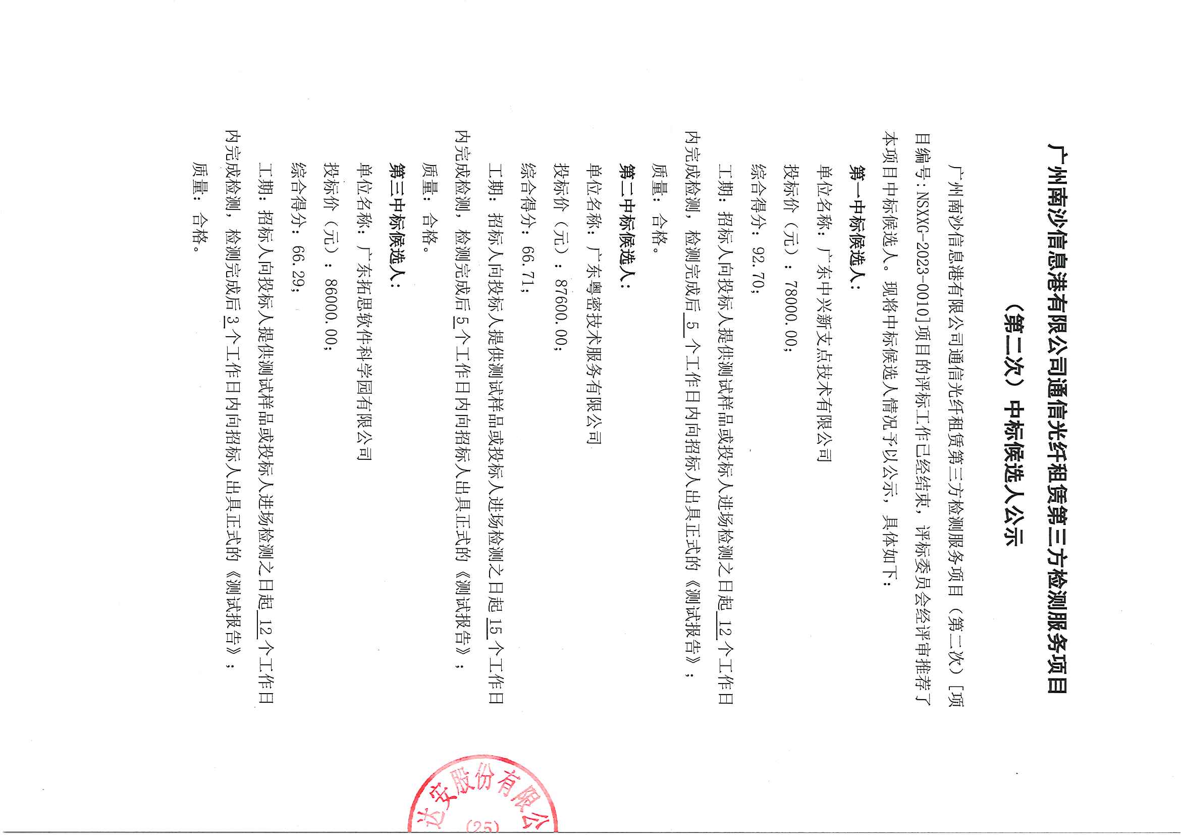 广州南沙信息港有限公司通信光纤租赁第三方检测服务项目 (第二次)中标候选人公示