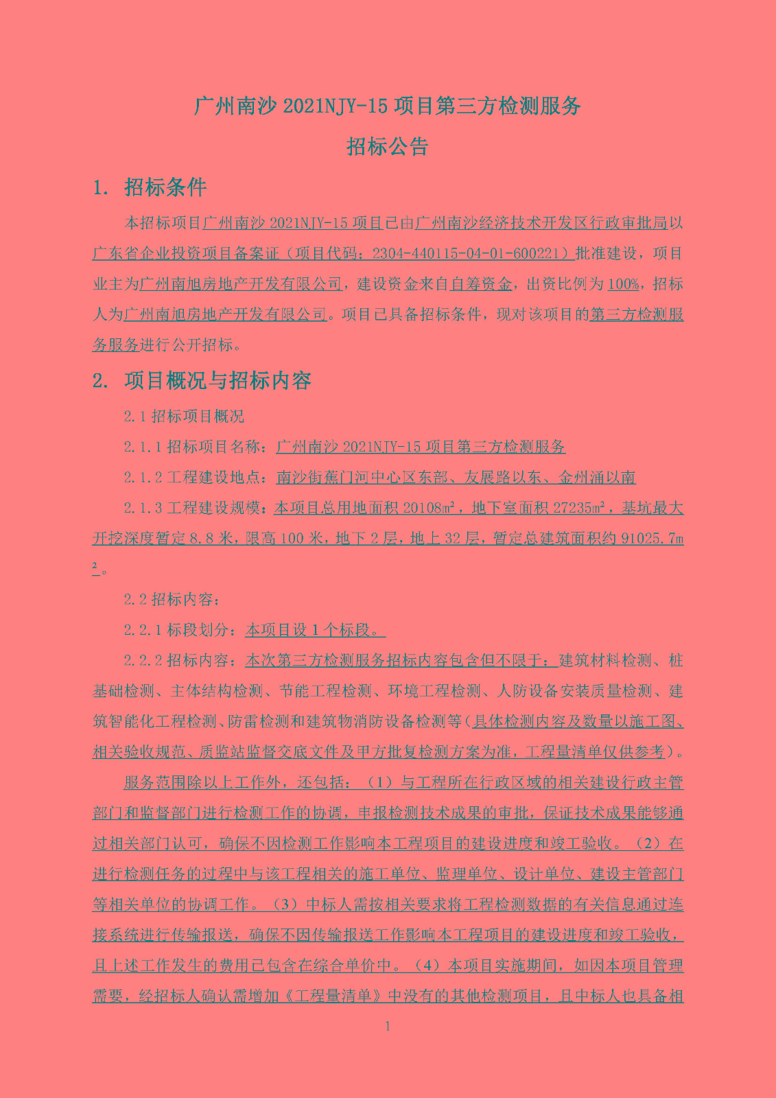 广州南沙2021NJY-15项目第三方检测服务招标公告