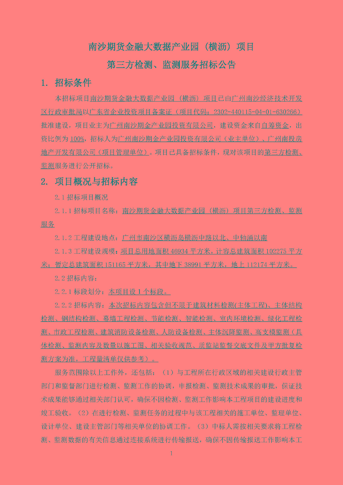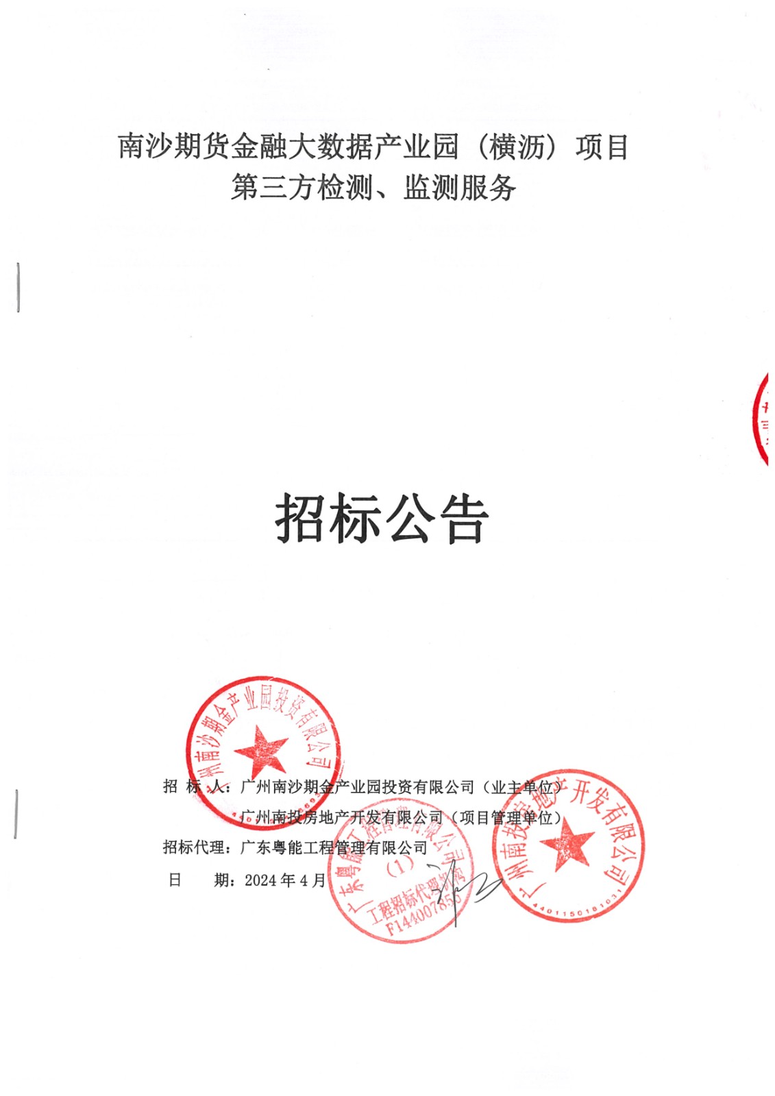 南沙期货金融大数据产业园(横沥)项目第三方检测、监测服务招标公告