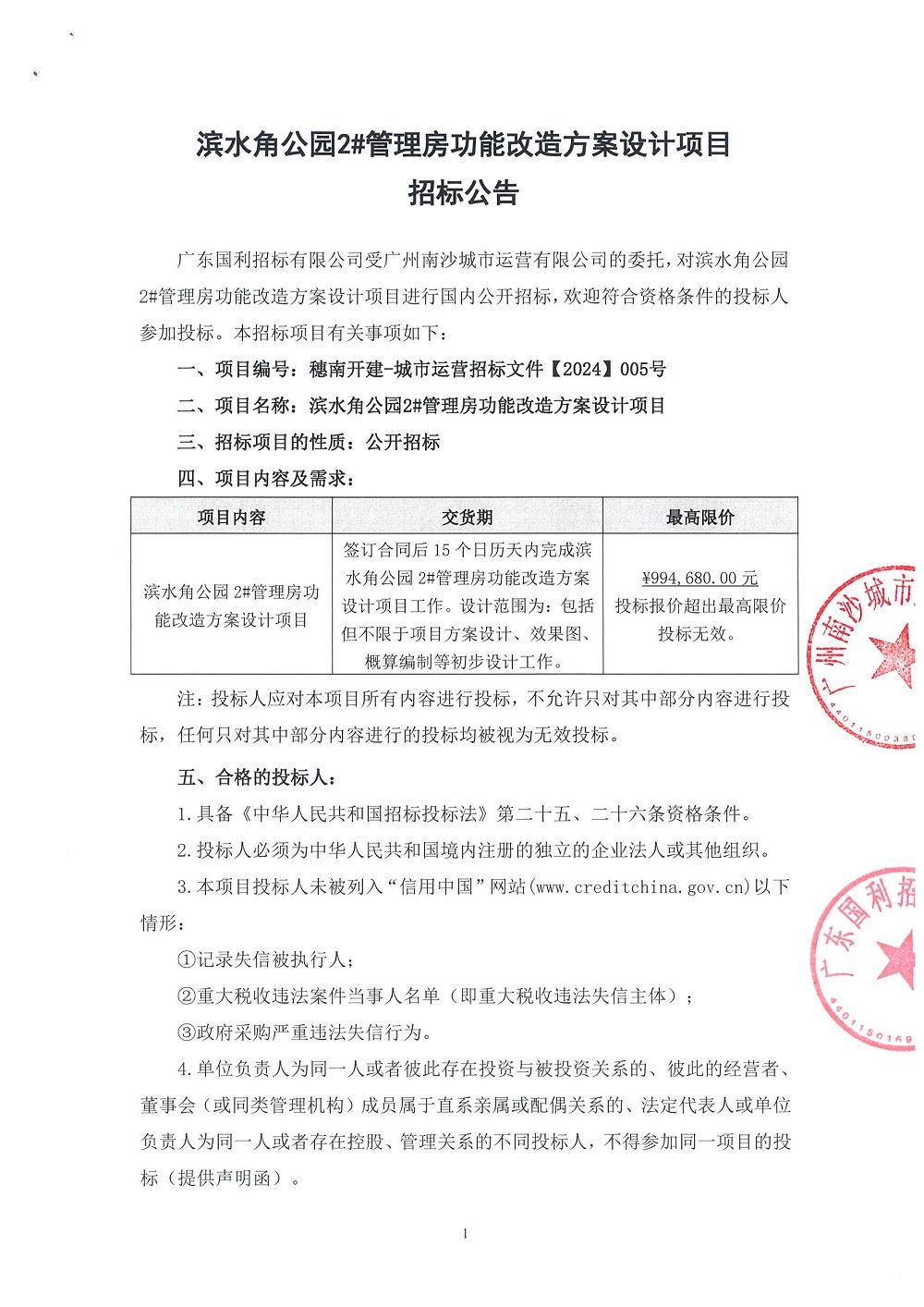 滨水角公园2#管理房功能改造方案设计项目招标公告