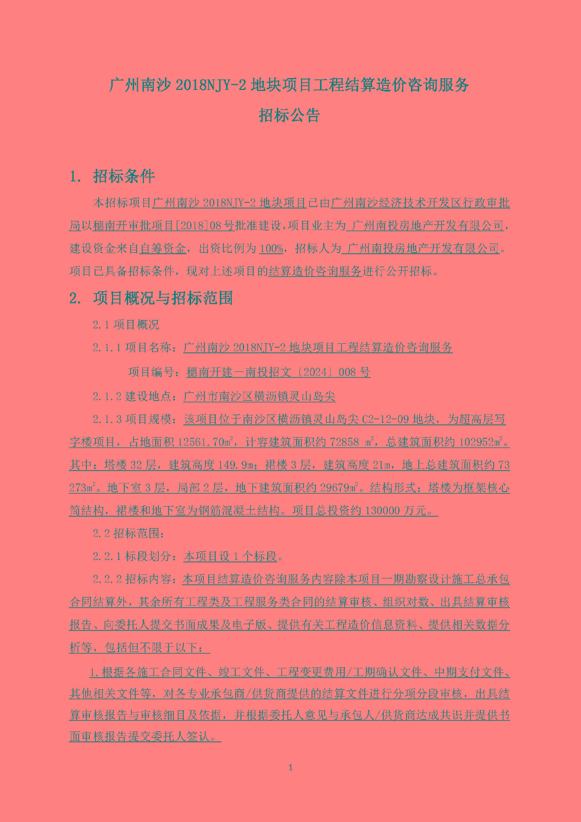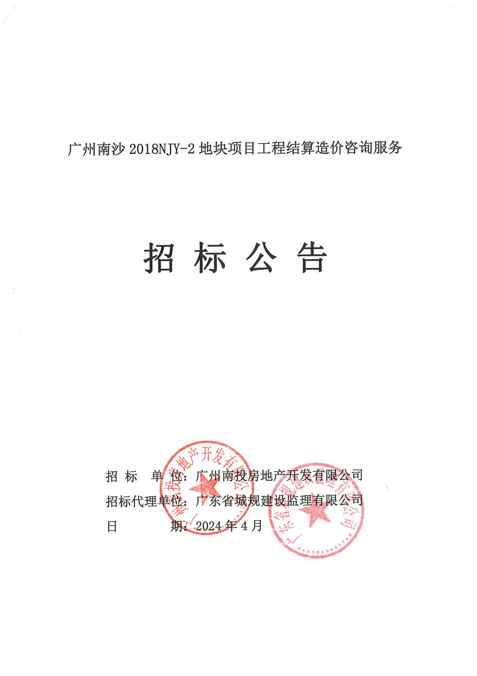 广州南沙2018NJY-2地块项目工程结算造价咨询服务招标公告