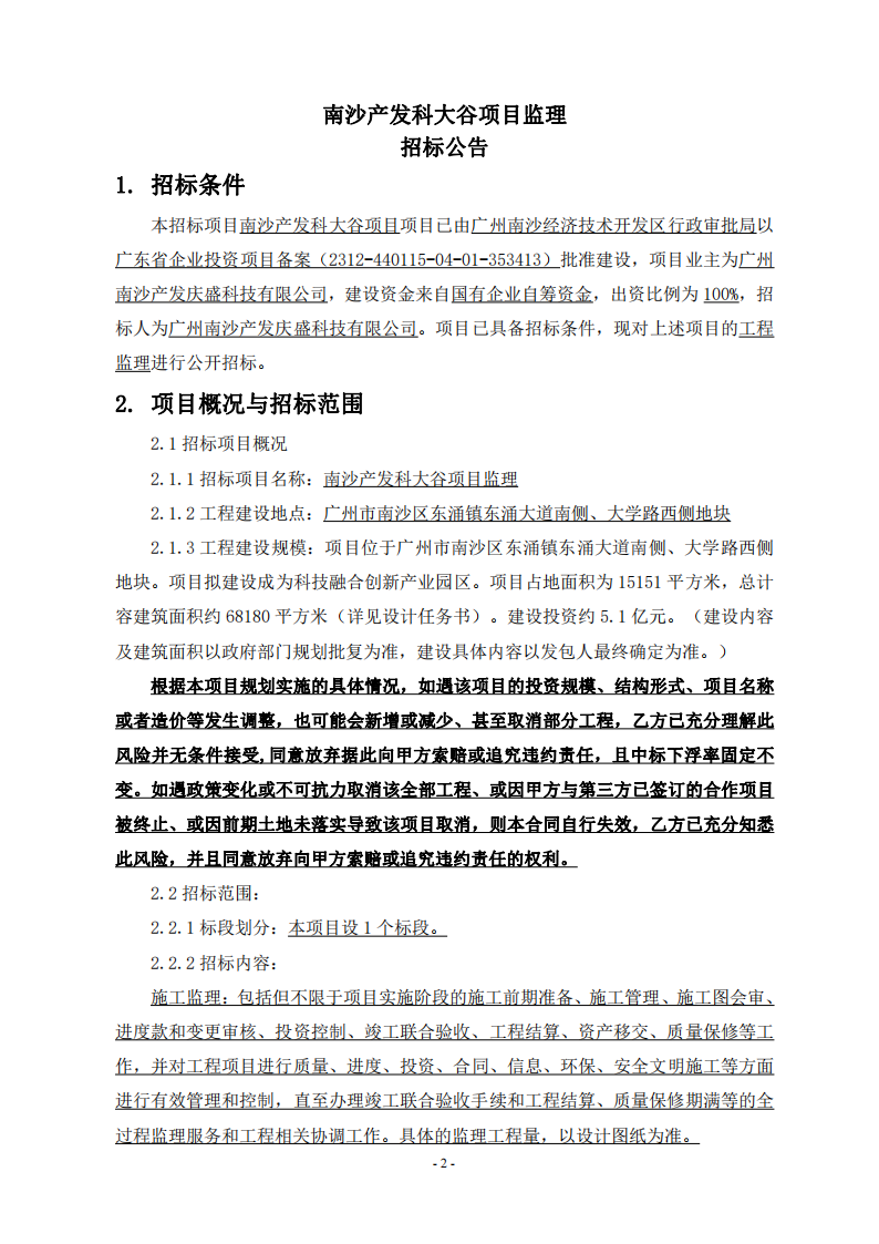 下一篇:南沙产发科大谷项目设计施工总承包招标公告
