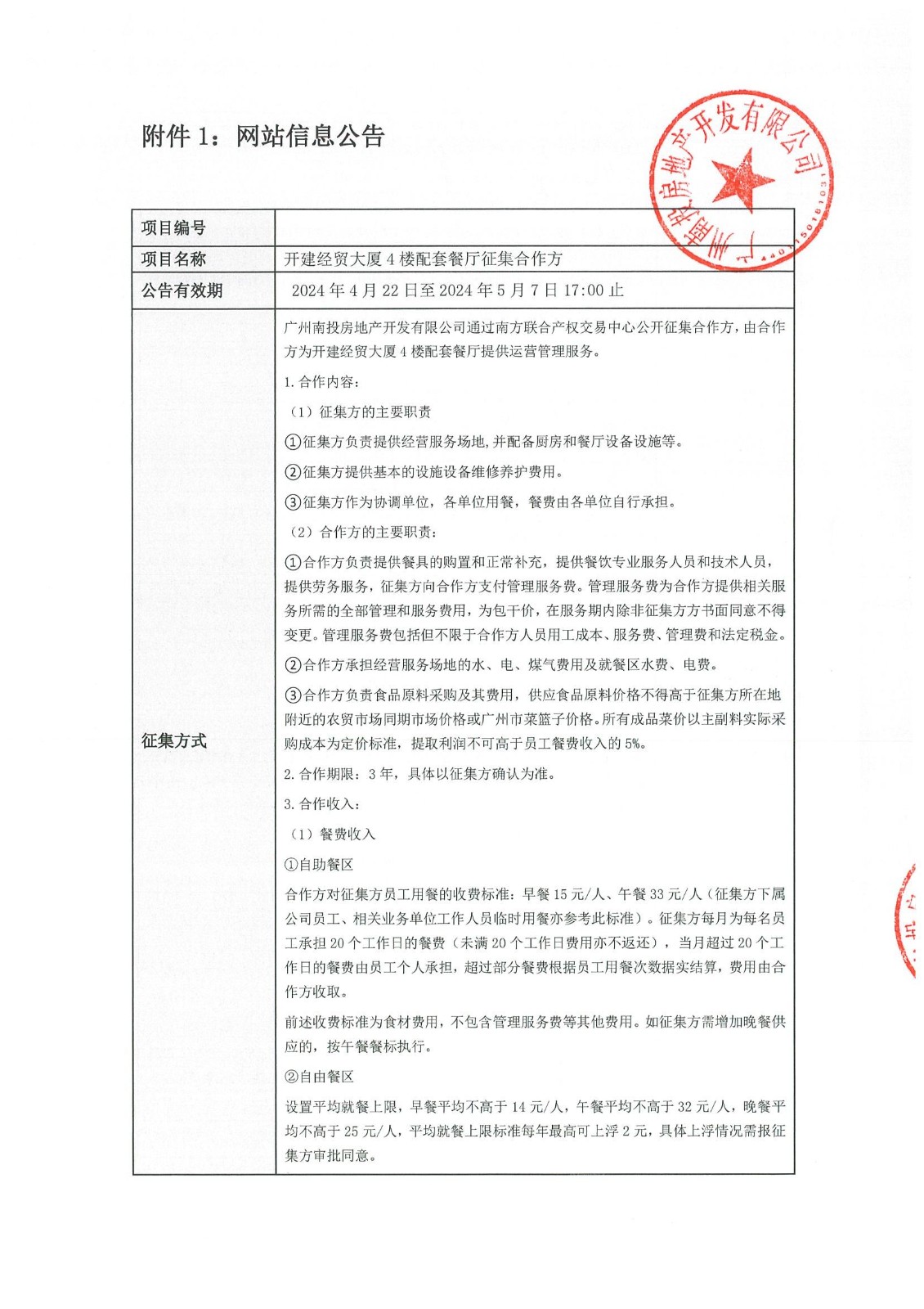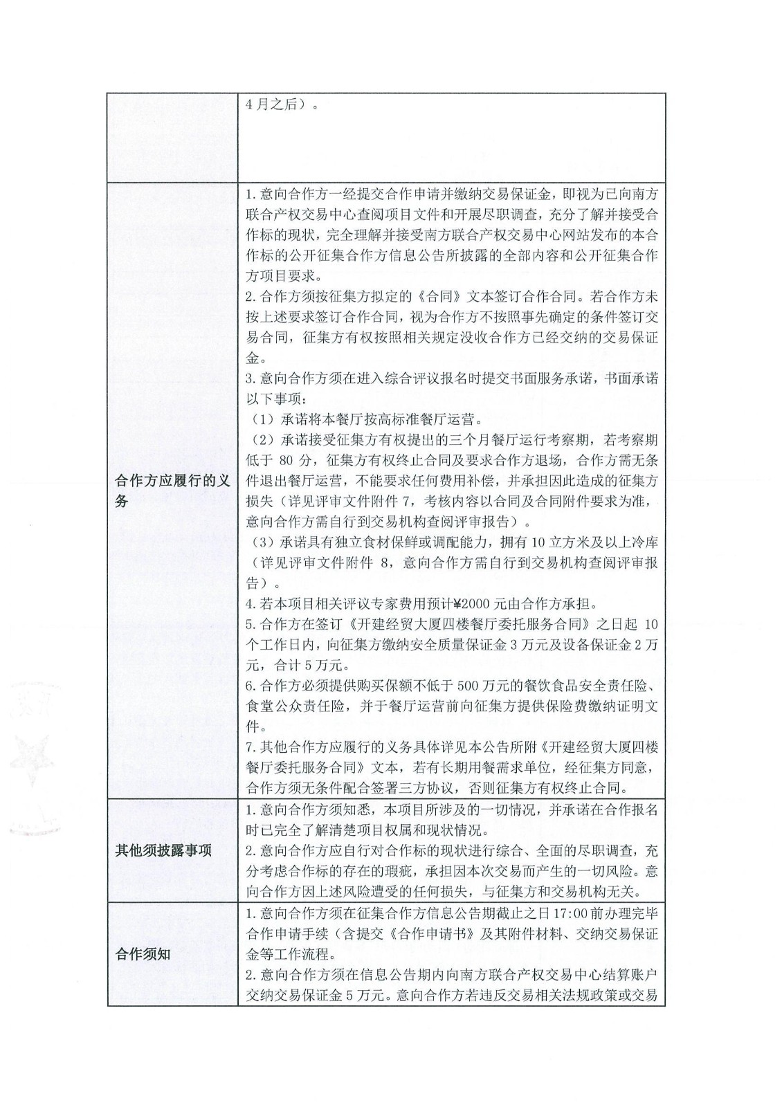 开建经贸大厦4楼配套餐厅征集合作方公告