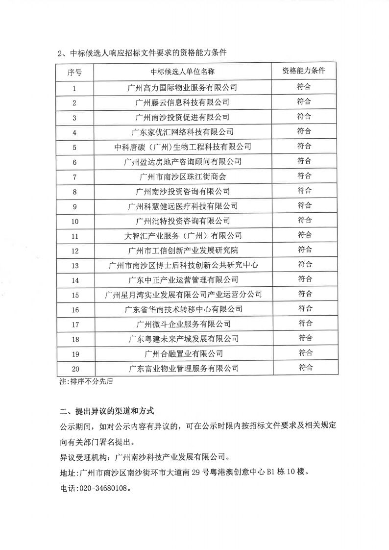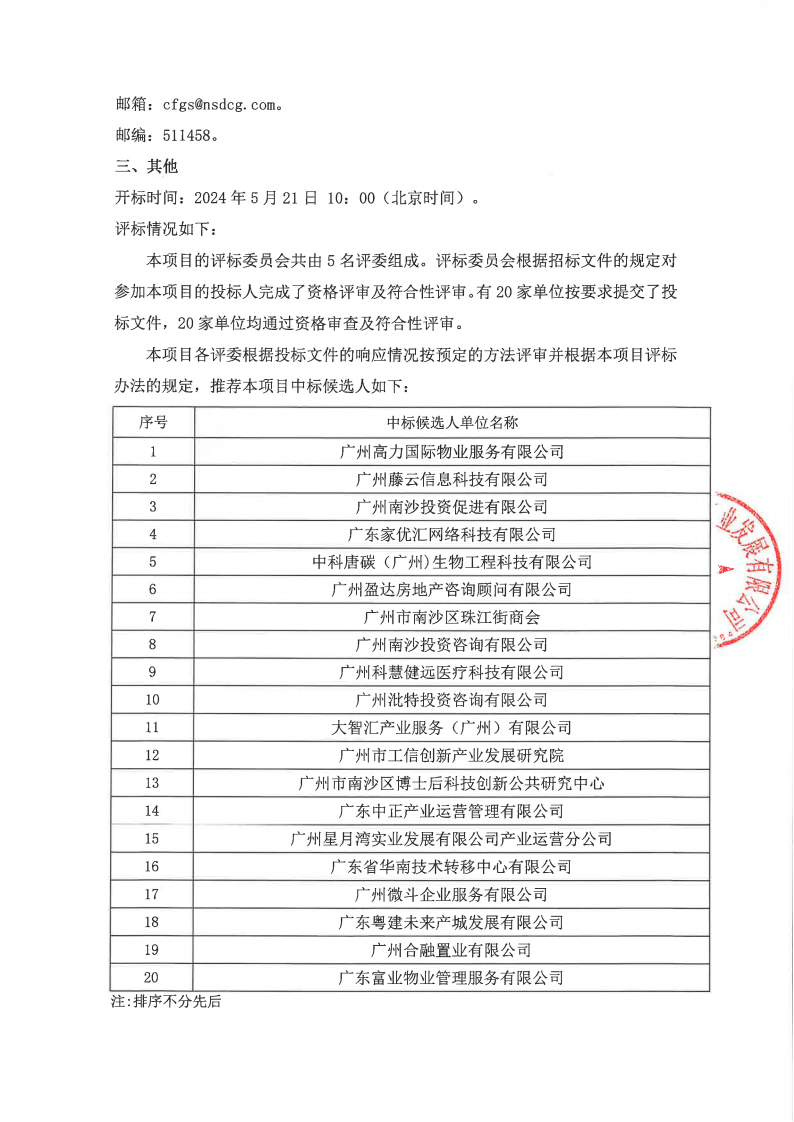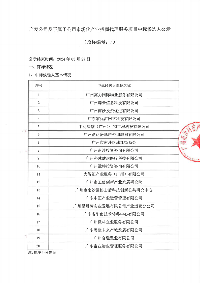 产发公司及下属子公司市场化产业招商代理服务项目中标候选人公示
