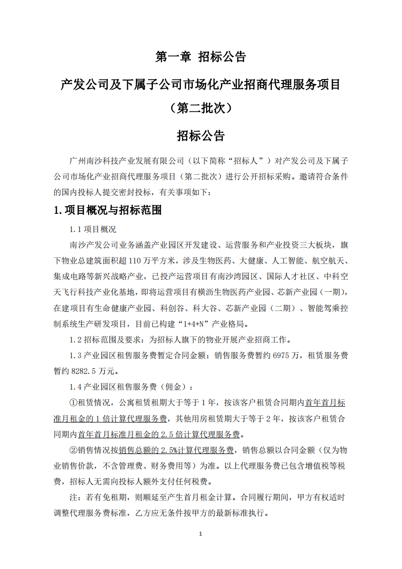 产发公司及下属子公司市场化产业招商代理服务项目(第二批次)招标公告