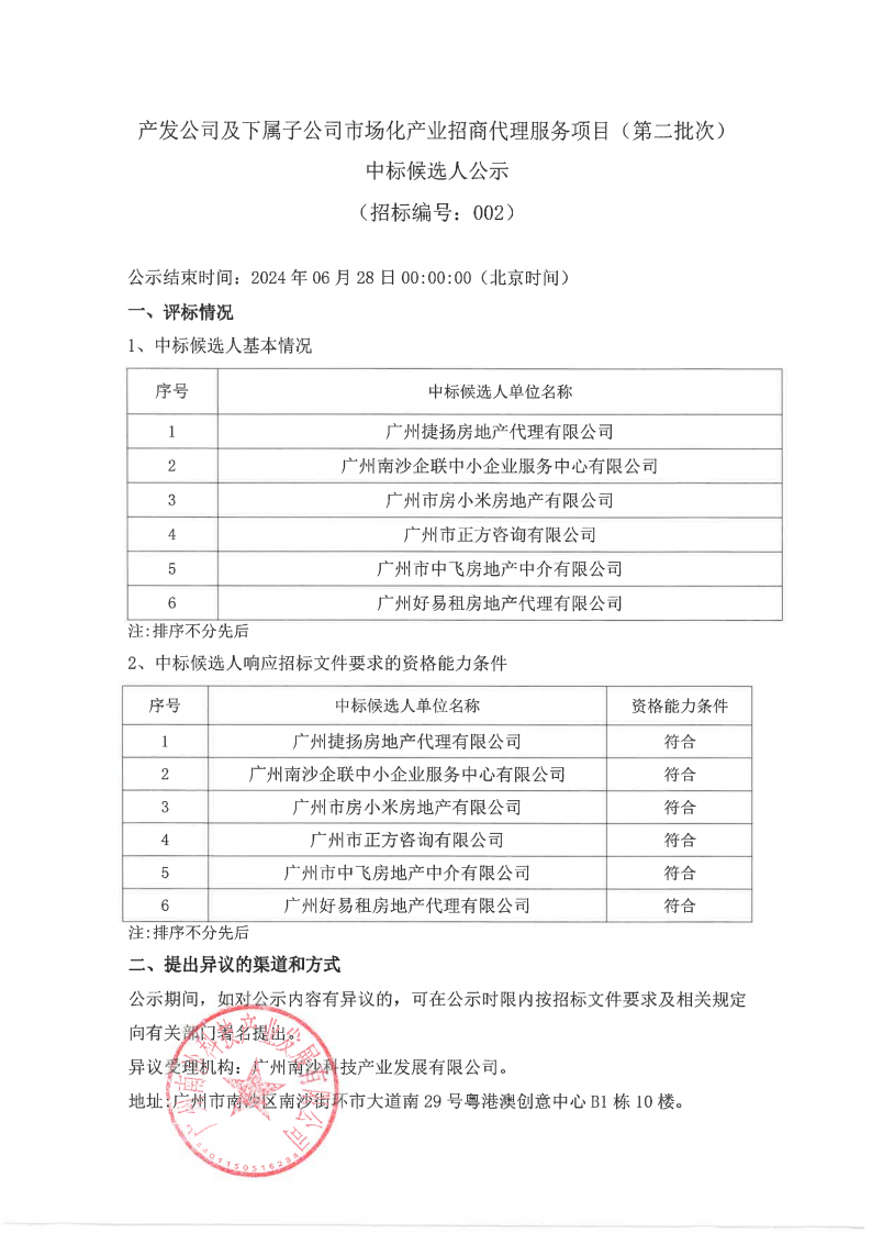 产发公司及下属子公司市场化产业招商代理服务项目(第二批次)中标候选人公示