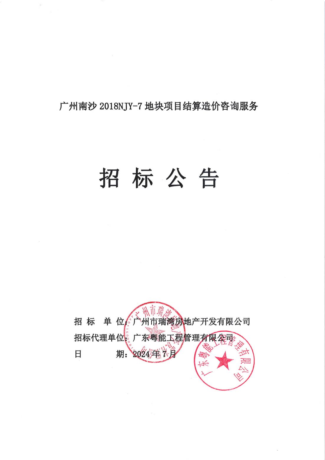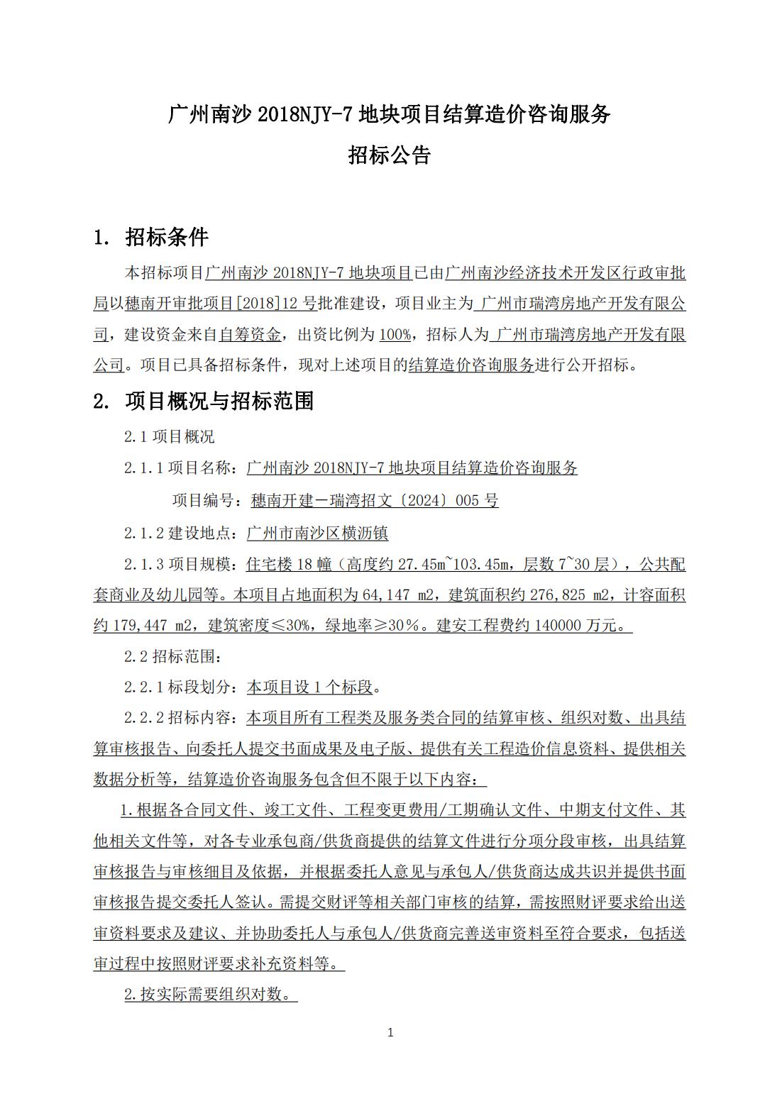 广州南沙2018NJY-7地块项目结算造价咨询服务招标公告