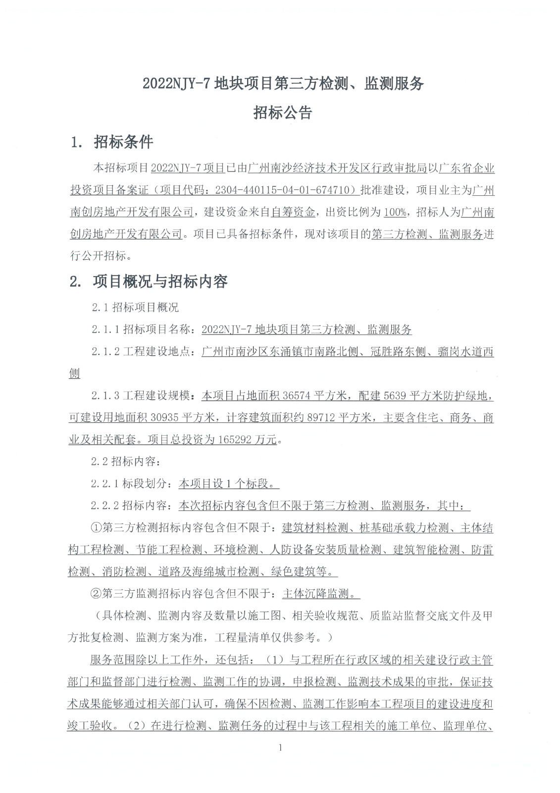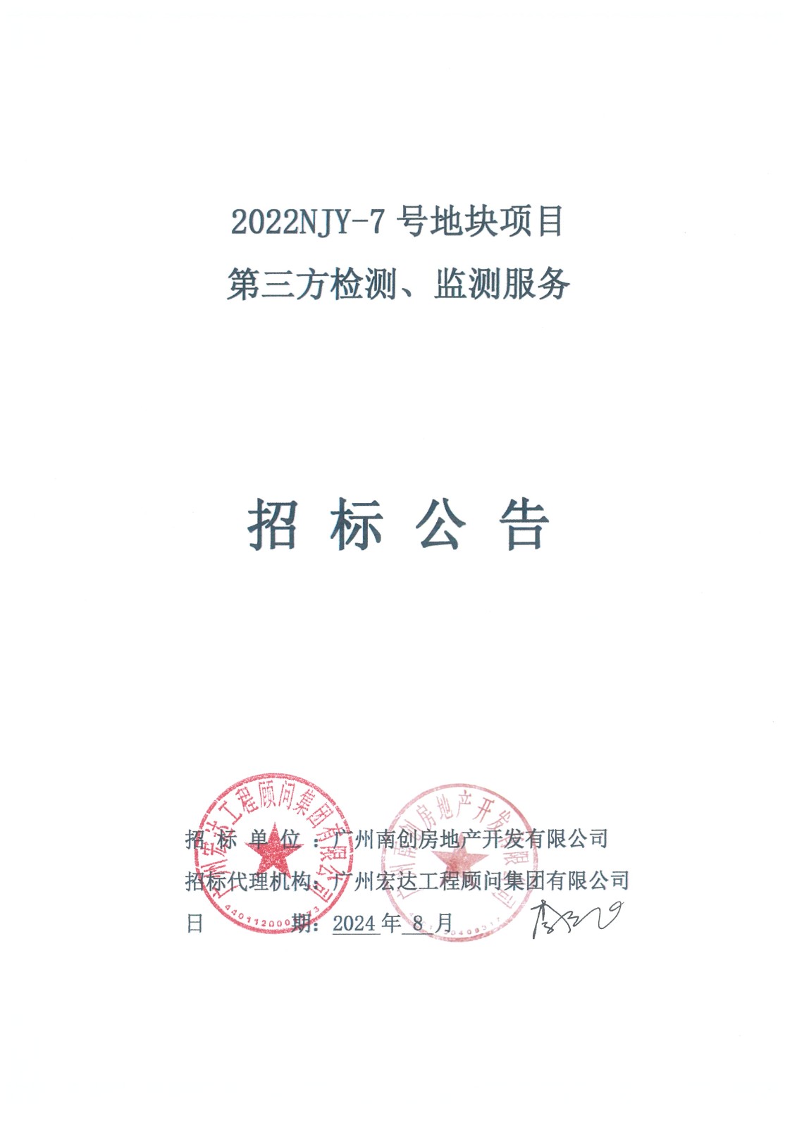 2022NJY-7地块项目第三方检测、监测服务招标公告