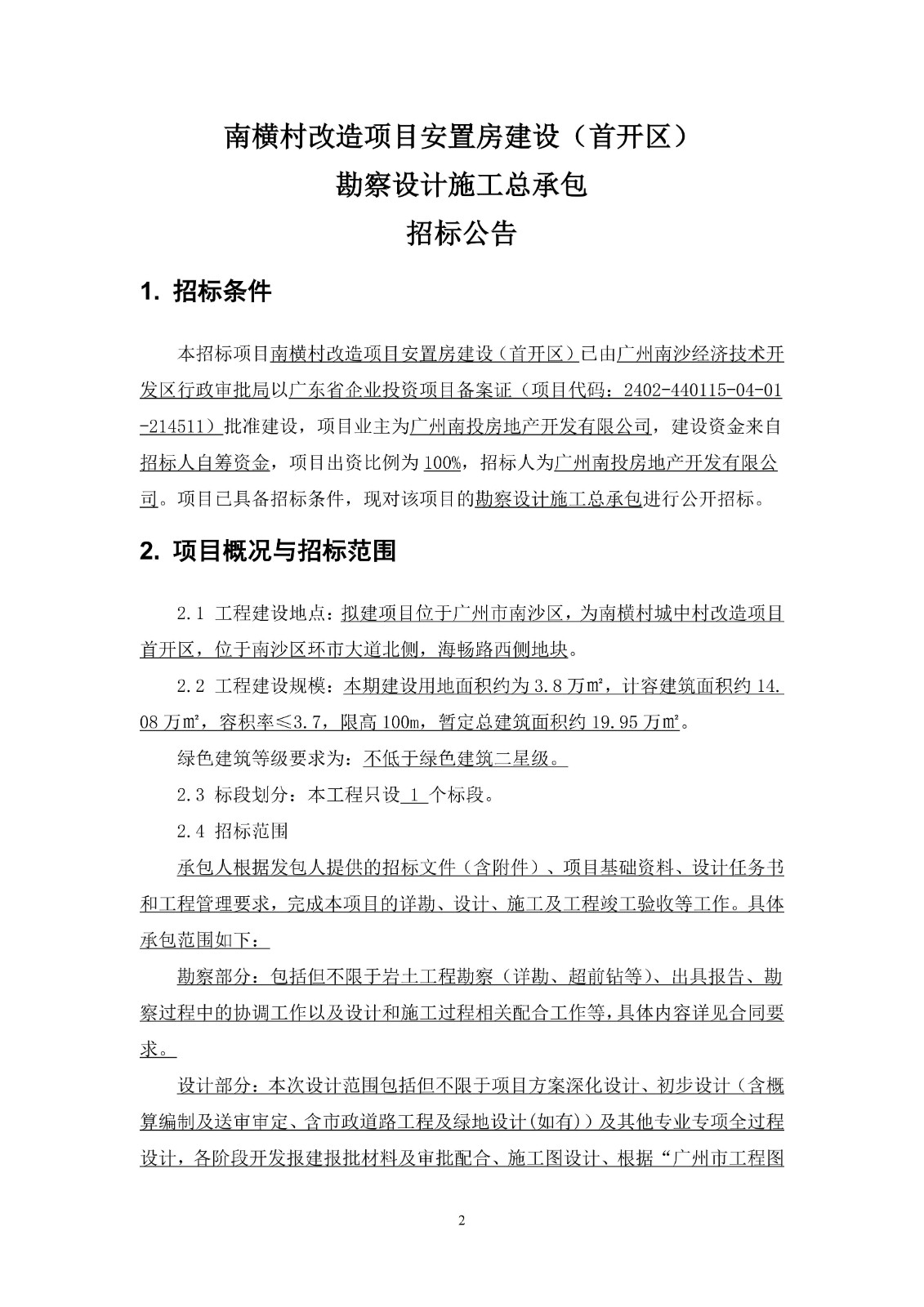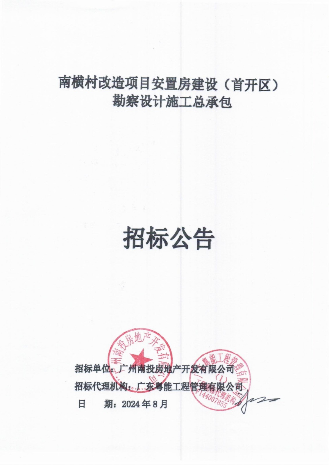 南横村改造项目安置房建设(首开区)勘察设计施工总承包招标公告