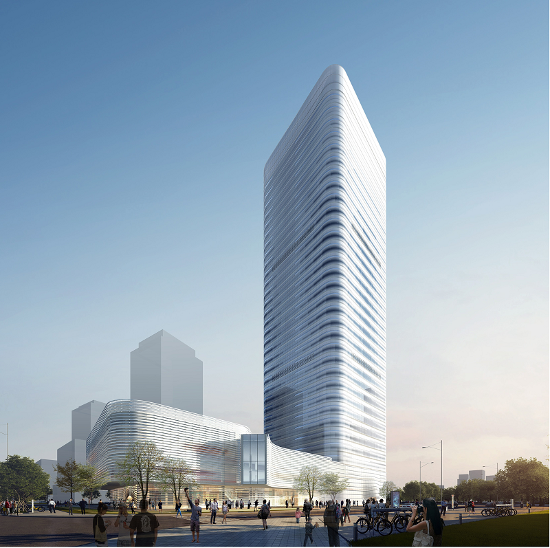 该项目由集团公司下属南投公司开发建设,位于灵山岛尖,总建筑面积约10万平方米,总投资约15.5亿元,预计2023年底投入使用。项目建筑空间安排灵活多样,包括了总部办公、国际贸易办公、综合服务大厅、国际会议中心及配套商业。本建筑巧妙融合“丝绸”“流水”等意象对大楼外立面进行艺术造型设计,以此寓意大楼服务的对象及功能定位同“一带一路”的合作倡议紧密相连。