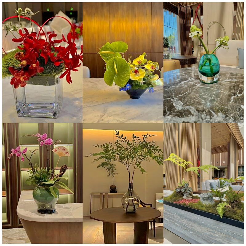 花艺的提供单位正是集团下属的城市空间公司。近期,城市空间公司及时把握市场机遇,推出精品花艺租赁服务,在本次岭南东方酒店开业活动中,深入洞察并精准把握酒店的文化底蕴与设计理念,其匠心独具的绿植花艺设计为酒店开业盛典“锦上添花”。