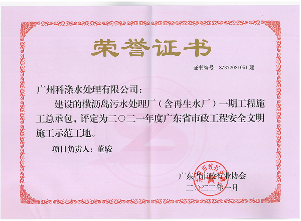 近日,由集团公司下属科涤公司负责组织实施的横沥岛污水处理厂(含再生水厂)一期工程项目,在多个参评项目中脱颖而出,荣获“广东省市政工程安全生产文明施工示范工地”称号,并在安全标准化系统中被评为优良等级。