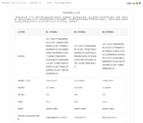 新年伊始,集团下属产业(新区)建管公司中标香港科技大学(广州)项目二期工程全过程工程咨询项目,迎来新年“开门红”!